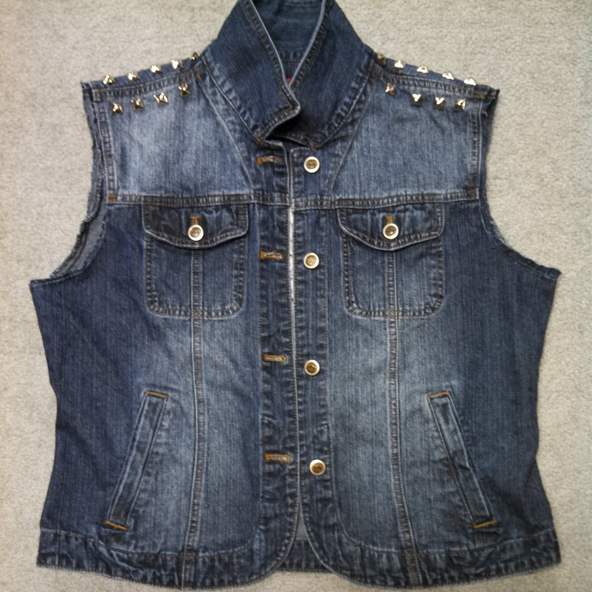 Lace & Leopard Cross Back Denim Vest - Size Medium